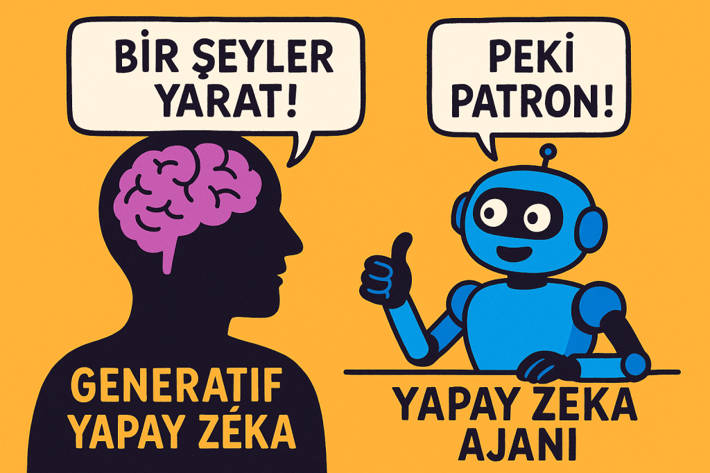 İçerik üretim motorunun (GenAI) ve otonom yürütücünün (AI agent) farkını hızlıca kavrayıp projelerinizde hangisini nerede kullanacağınızı netleştireceğiz.